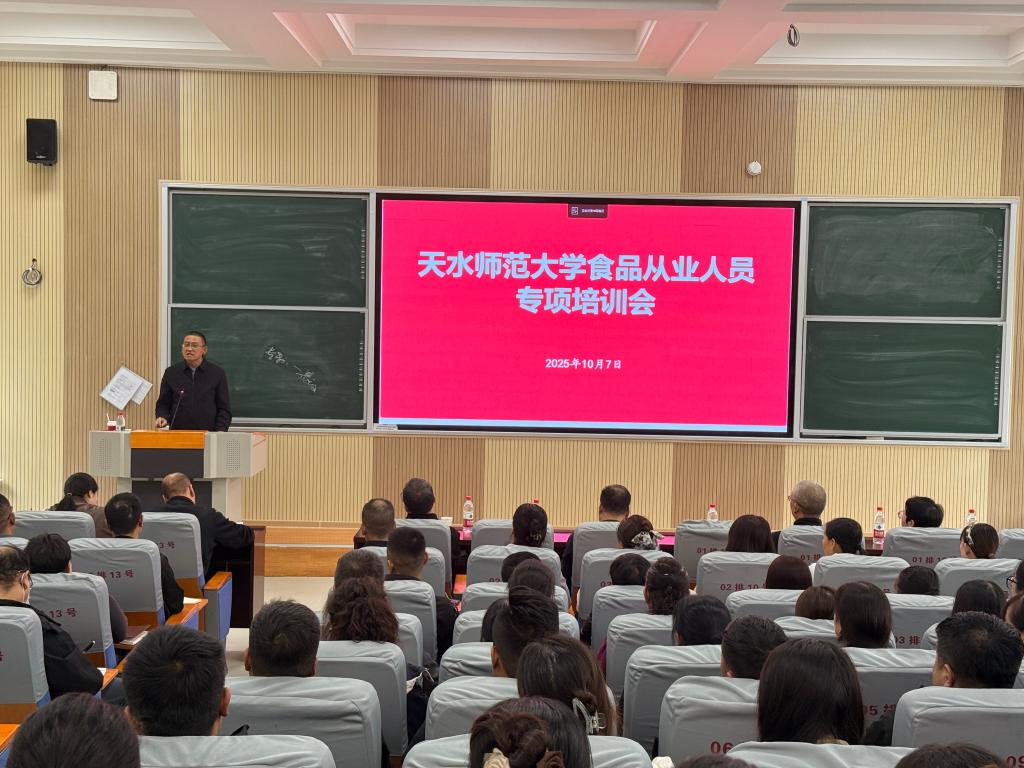 为全面强化餐饮服务人员食品安全意识,规范操作流程,切实保障广大师生的饮食安全与健康,10月7日下午,后勤保障部餐饮服务中心特邀天水市市场监管部门专业人员,对食堂全体员工共计300余人开展食品安全知识专题培训。此次培训是后勤保障部深化食品安全管理、提升服务质量的重要举措,旨在通过系统性学习与专业指导,筑牢餐饮服务安全防线。